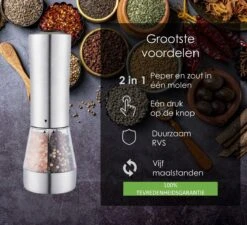 101Products Peper- & Zoutmolen Elektrisch – USB Oplaadbaar – Pepermolen – Zoutmolen – RVS