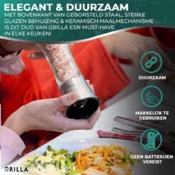 Peper En Zoutmolen Set – RVS Zout En Peperstel – Zoutvaatje En Pepermolen – 2 In 1